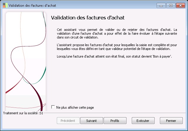 Cet assistant permet, pour les factures d'achats confirmées , la validation des étapes du circuit.