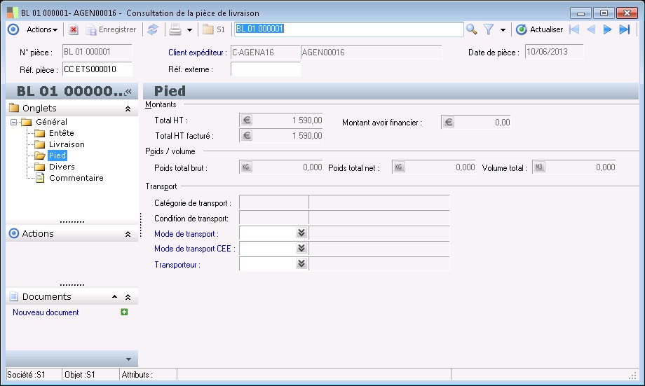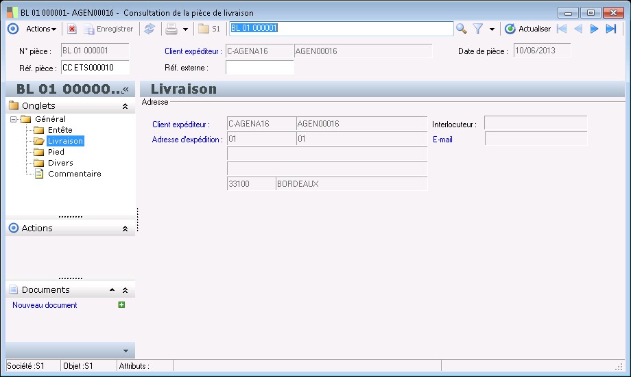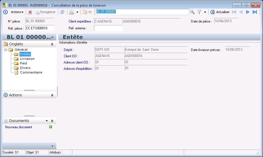 Date de livraison prévue, c'est la date saisie en entête de pièce qui est reprise par défaut, elle est modifiable à la ligne dans la colonne Détail Livraison.