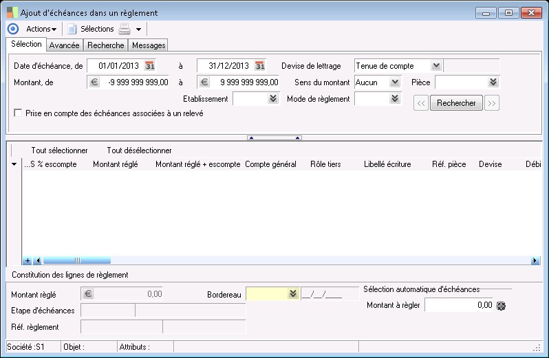 Remarque : quand il s'agit d'un règlement, la date d'échéance est par défaut ègale à la date de référence.Elle est biensûr modifiable par l'utilisateur.