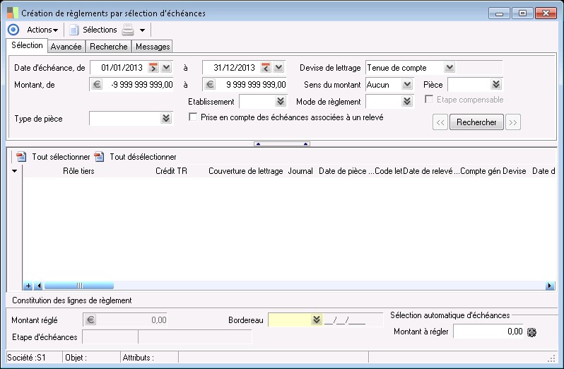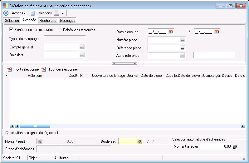 - si vous cochez cette option, les échéances faisant partie d'une relevé et répondant aux critères de sélection seront prises en compte dans le traitement.