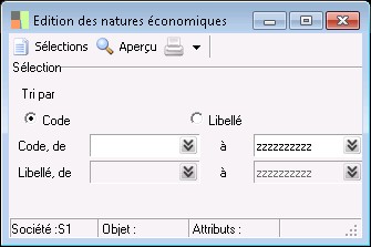 Le tri par libellé édite les natures économiques dans l'ordre croissant du libellé.
