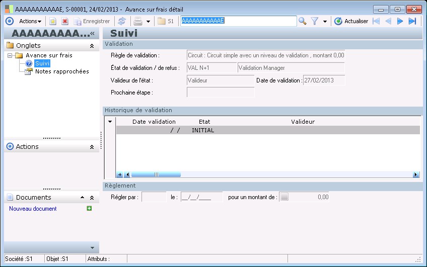 Une avance sur frais peut être valide dès sa confirmation, si aucune règle de validation n'est affectée à cette avance (c'est le cas quand le salarié n'appartient à aucune catégorie de salariés).