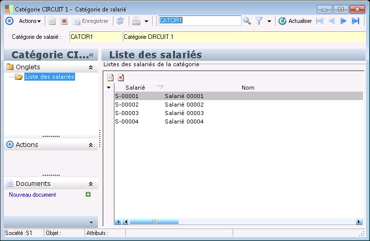 Cette fenêtre est accessible à partir de la liste des catégories de salarié de la fonction Paramètres / Salarié / C atégories de salarié . Volet Liste salariés Ce volet permet d'ajouter les salariés pour la catégorie de salarié créée.
