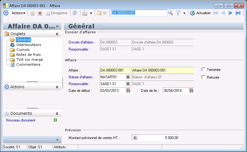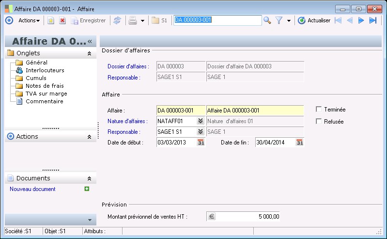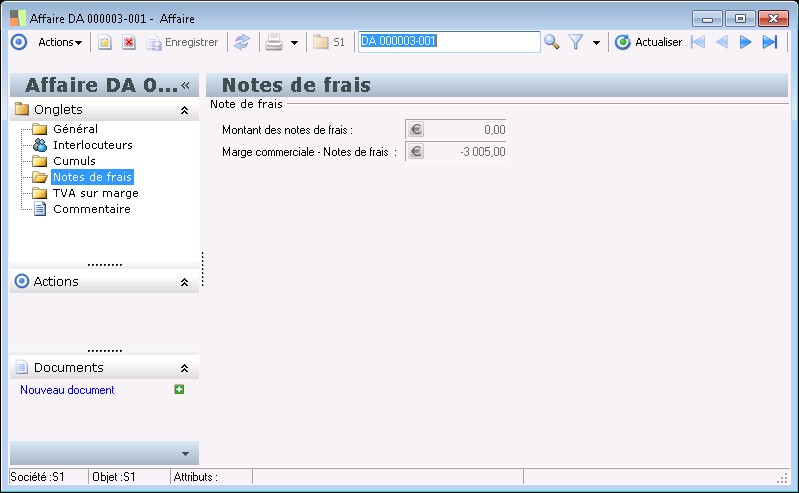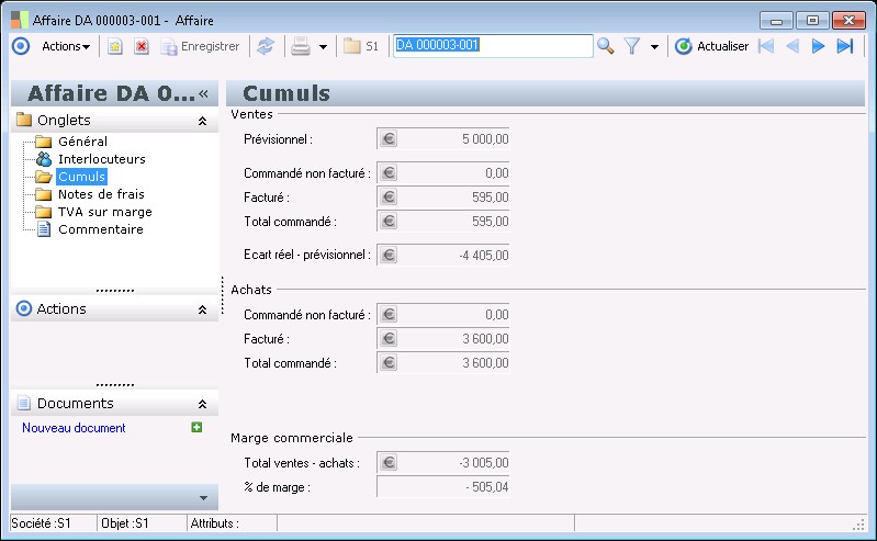 Permet de déterminer la marge de l'affaire en comparant le total des achats et le total des ventes affectés à l'affaire.