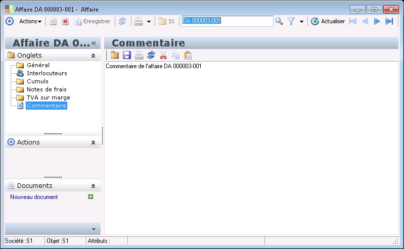 Ainsi, en saisie de pièces commerciales, il est possible de renseigner une affaire à laquelle la rattacher.