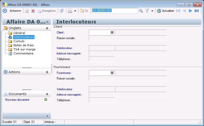 Cette zone permet d'indiquer l'interlocuteurprivilégié à contacter chez le fournisseur au sujet de l'affaire considérée.