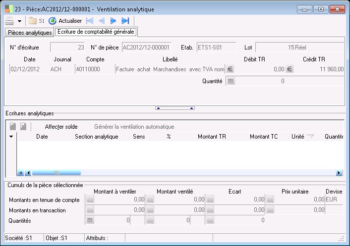 Lorsque l'axe analytique est ventilable à 100%, ce montant est égal au montant de l'écriture de comptabilité générale.
