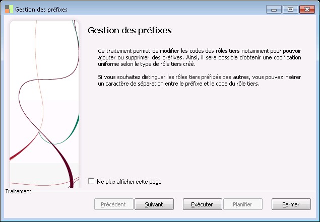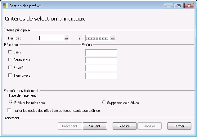 Cette zone permet d'indiquer le préfixe souhaité pour les rôles tiers de type 'Fournisseur' à traiter.