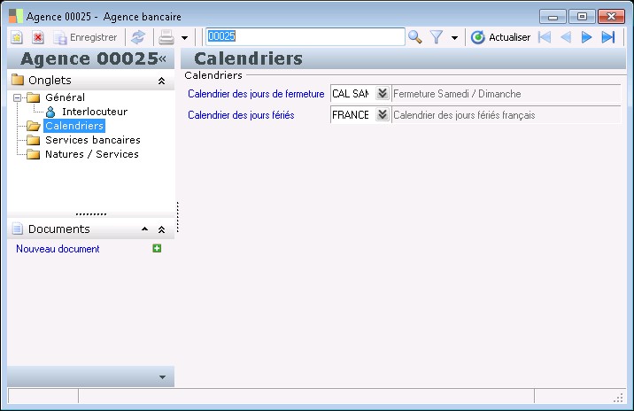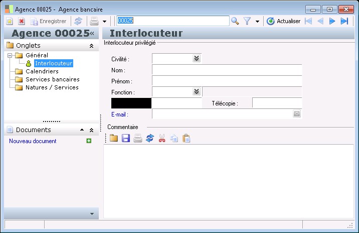 La fenêtre « Agence bancaire » permet le paramétrage des agences bancaires.
