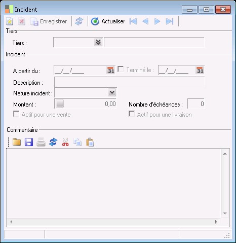Cette fenêtre sert à l'enregistrement d'un incident concernant un client et tout ce qui s'y rattache :