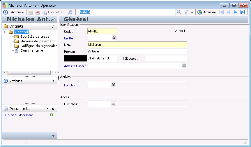 Cette zone permet de renseigner le numéro de télécopie de la personne.