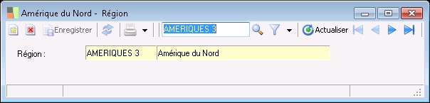 La fenêtre de saisie des régions permet d'enregistrer le code ainsi que la désignation des régions mentionnées dans les fiches tiers.