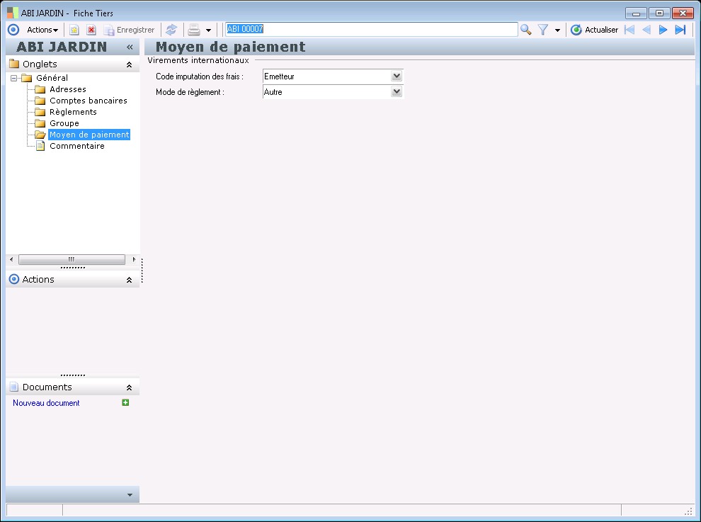 Le mode de règlement du tiers est par défaut égal à "Autre".