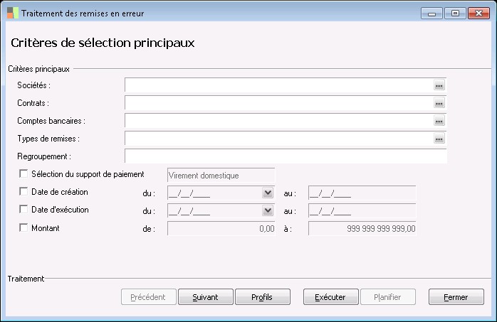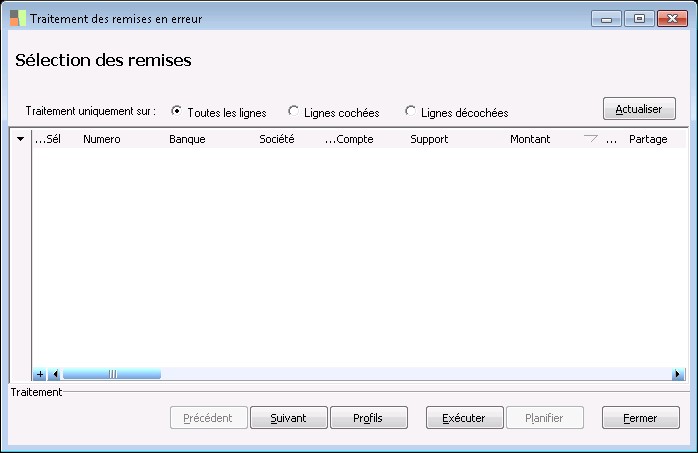 type de traitement : tous, sélectionné, non sélectionné.