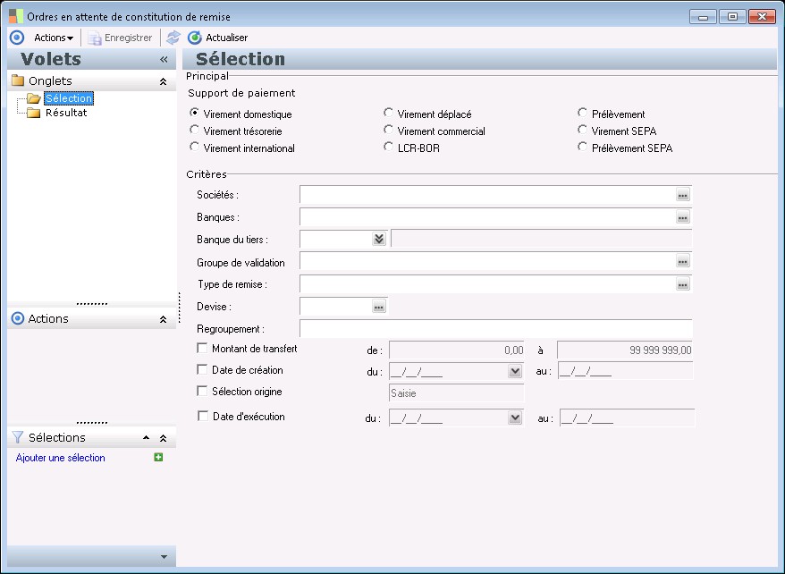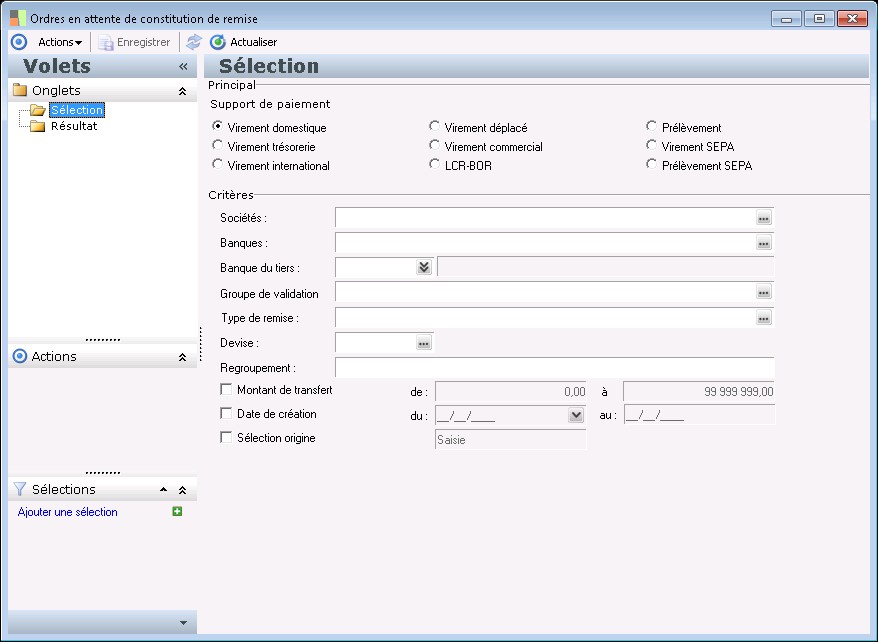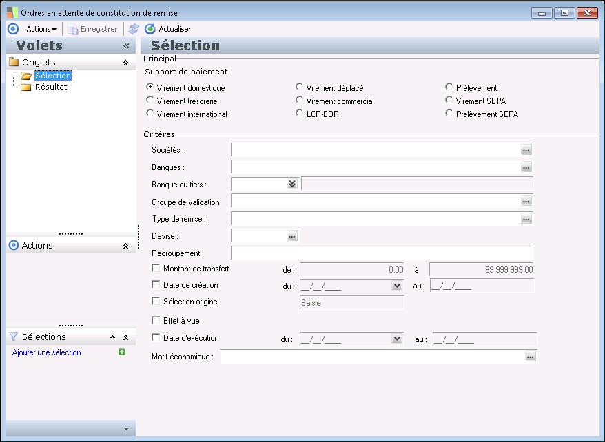 Trésorerie : permet de sélectionner les ordres généré par la Trésorerie Sage