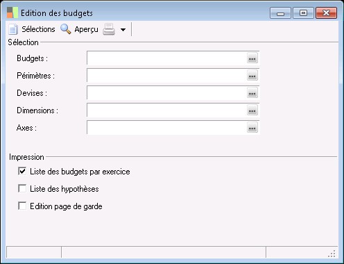 Sélectionner le(s) axe(s) dont les budgets doivent être édités.