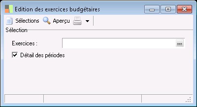 Cet écran permet d'éditer les exercices budgétaires avec ou sans le détail des périodes qu'ils contiennent.