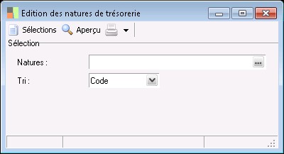 Cet écran vous permet d'éditer la liste des natures budgétaires de trésorerie, triées par code ou par libellé.