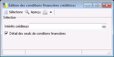 Edition des conditions financières créditrices