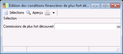 Cet écran permet d'éditer la liste des conditions financières de commission du plus fort découvert.