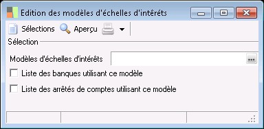 Vous pouvez sélectionner les modèles devant être édités, et indiquer ou pas les banques et les arrêtés de comptes utilisant ce modèle.