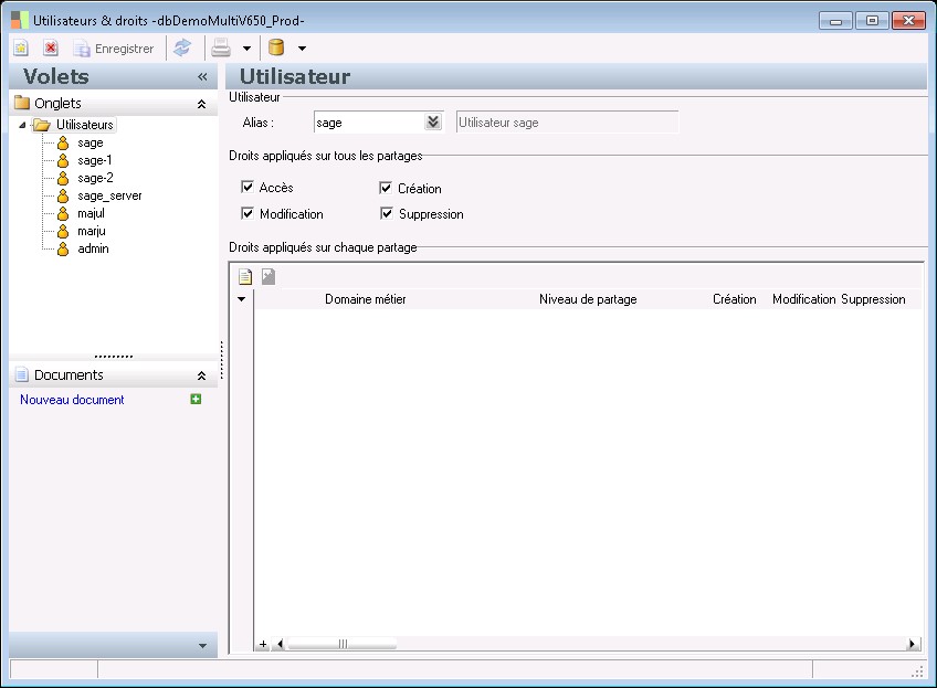 Droits appliqués sur tous les partages