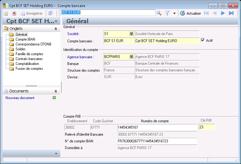 La clé RIB française permet de vérifier que le numéro de compte a été correctement saisi. Ce contrôle peut être désactivé dans la fiche agence bancaire.