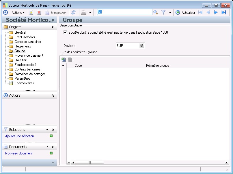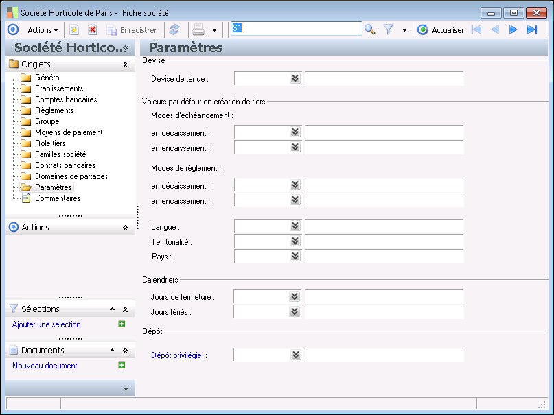 Cette zone permet de renseigner le pays d'après les informations contenues dans la table des pays. Le pays proposé par défaut correspond à celui de l'établissement indiqué dans la fiche société.
