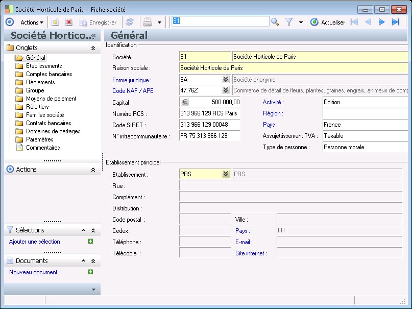 Cette information précise à quel mode de TVA est assujetti le tiers : Taxable, Non taxable, Intracommunautaire, Export, Fictive.