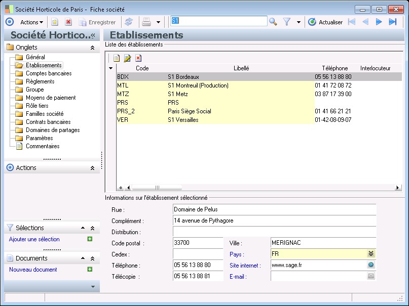 Cette zone permet d'ajouter une description ou un libelléau site du tiers.
