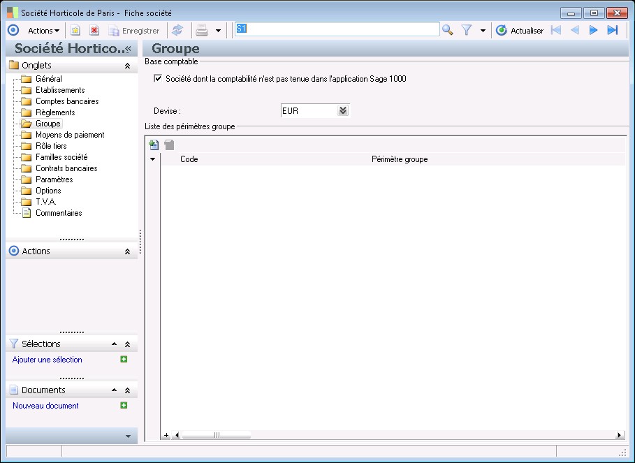 Cette information précise à quel mode de TVA est assujetti le tiers : Taxable, Non taxable, Intracommunautaire, Export, Fictive.
