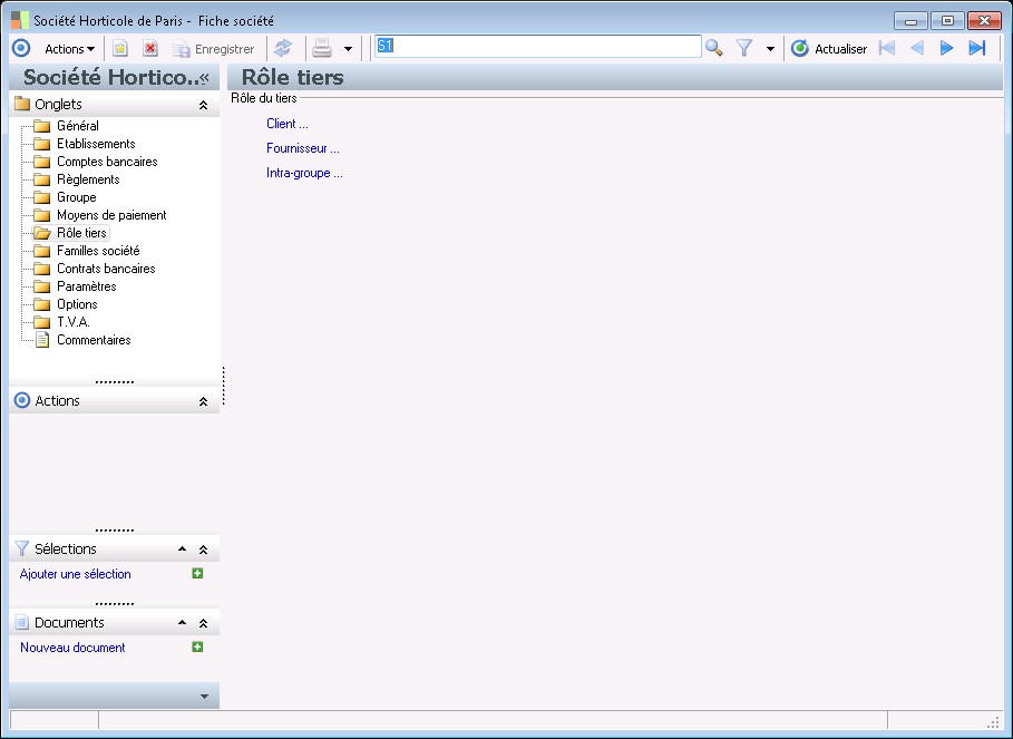 Dès qu'un des rôles du tiers est mouvementé en saisie d'écriture, l'assujettissement TVA du tiers est reporté sur la pièce. L'utilisateur peut toujours modifier cet assujettissement TVA au niveau de la pièce.