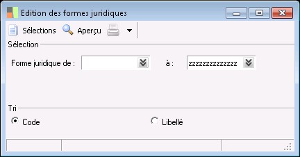 Le tri par code édite les formes juridiques dans l'ordre croissant de leur code.