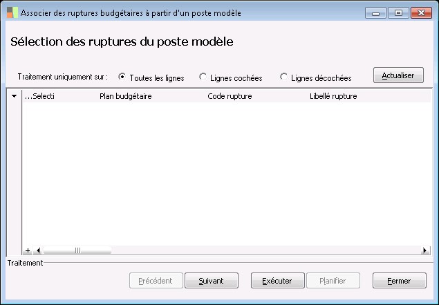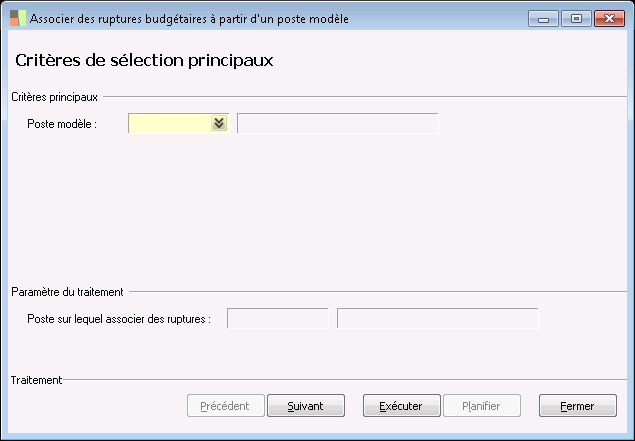 Associer des ruptures budgétaires à partir d'un poste modèle Cette fonction donne accès à un assistant afin de rattacher un poste budgétaire à un poste modèle.