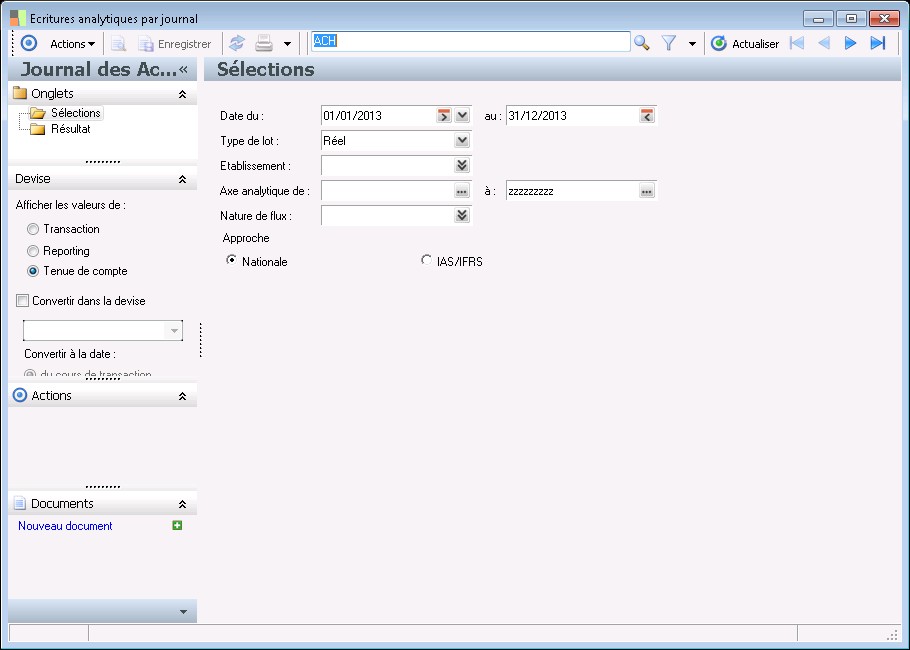 - IAS / IFRS : cette nature peut être affectée par l'utilisateur à une pièce saisie dans un lots de catégorie Retraitement.