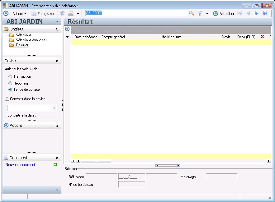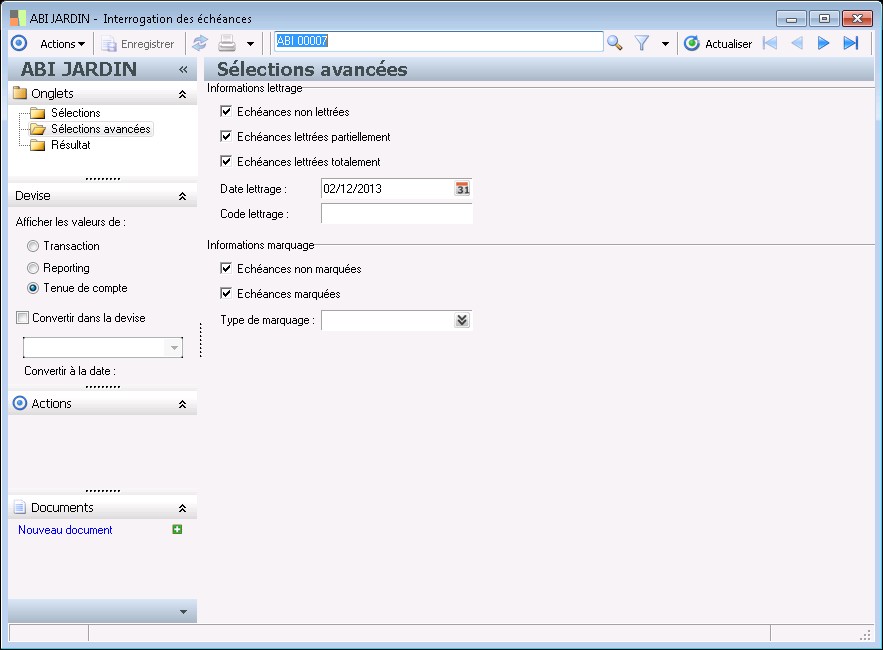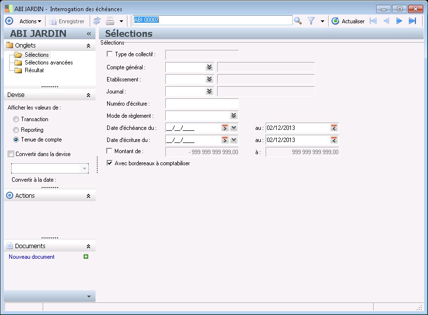 Cedossierpermet d'affiner la sélection des échéances à prendre en compte, avec des critères tels que :