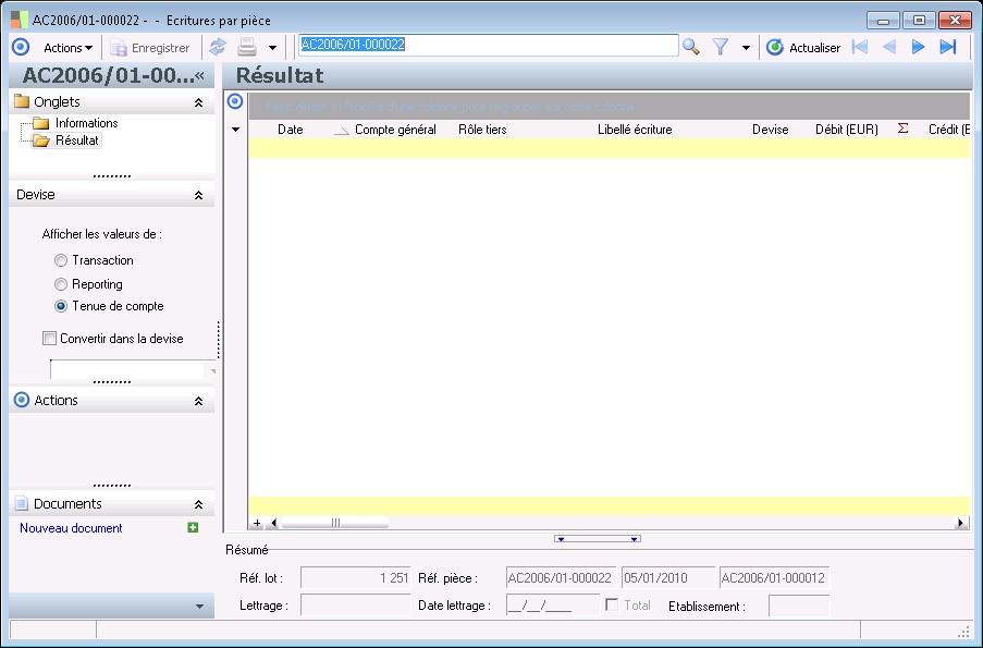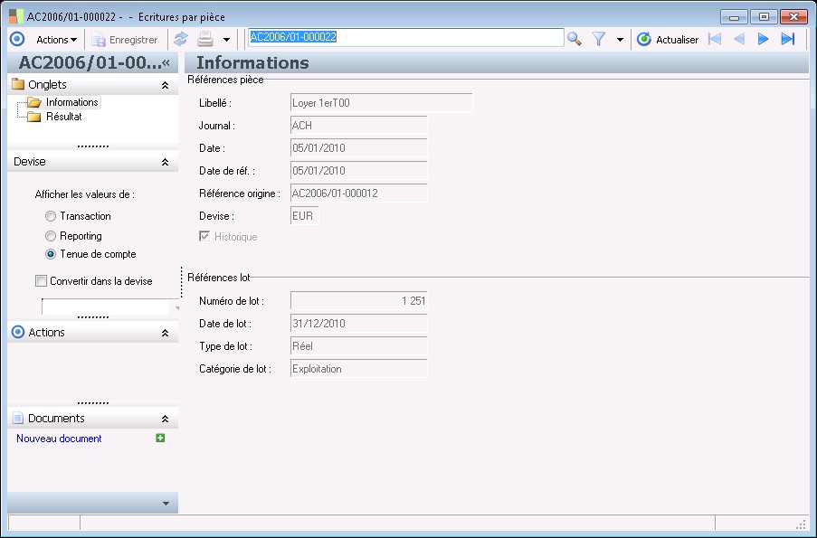 L'ensemble des écritures de la pièce ont leur montant exprimé dans la devise de la pièce.