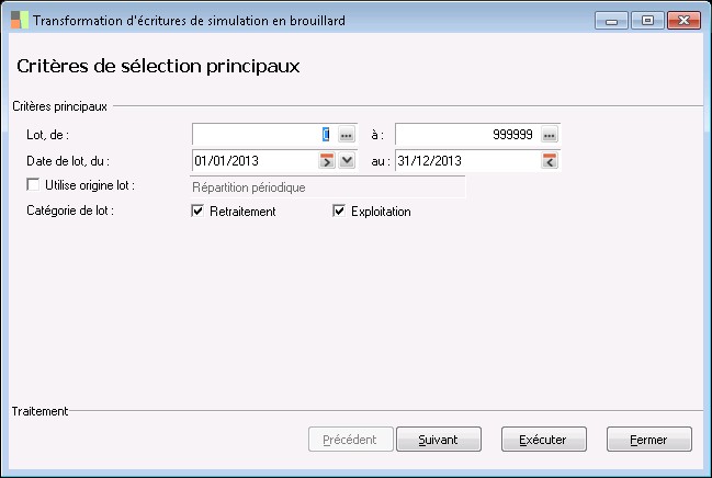 - Retraitement : pour les lots contenant des pièces de nature nationale ou IAS / IFRS correspondant à des écritures de fin de période comme les amortissements par exemple.