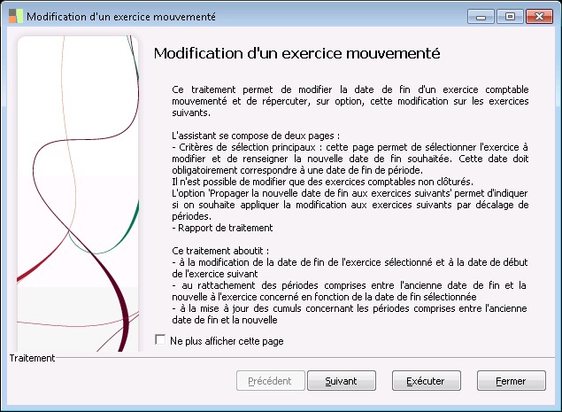 Si cette option est activée, la modification de la date de fin d'exercice s'applique à la fois à l'exercice sélectionné et est aussi répercutée automatiquement à tous les exercices suivants s'il en existe au moins un.