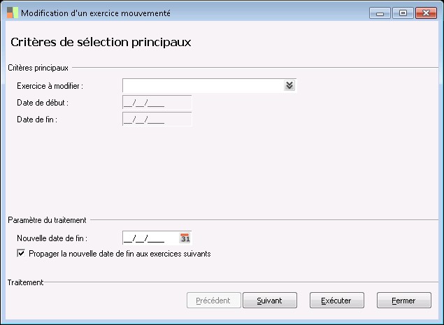 Permet de sélectionner l'exercice comptable pour lequel on souhaite modifier la date de fin.