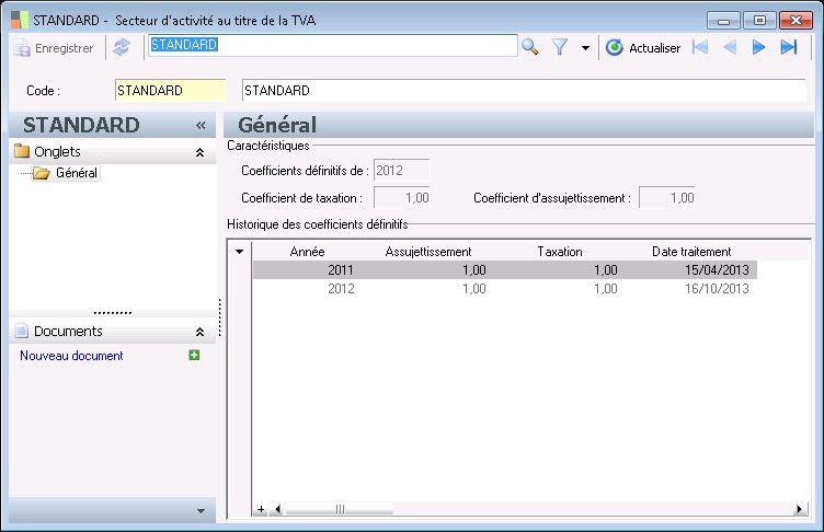 Chaque secteur d'activité de TVA a une valeur pour le coefficient d'assujettissement etune valeur pour le coefficient de taxation.