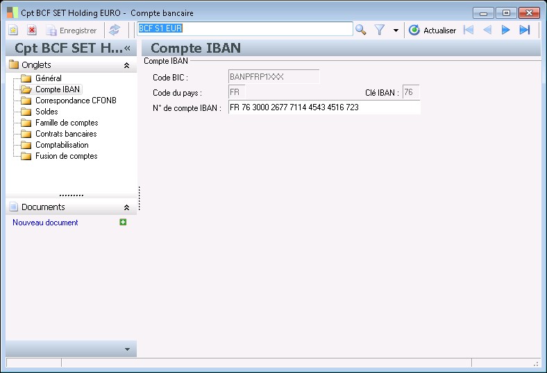 Affiche le compte bancaire avec la structure normalisée IBAN.
