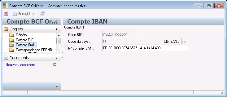 La clé RIB française permet de vérifier que le numéro de compte a été correctement saisi. Ce contrôle peut être désactivé dans la fiche agence bancaire.