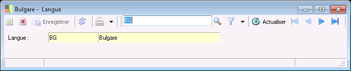 La fenêtre de saisie des langues permet d'enregistrer le code ainsi que la désignation de la langue.