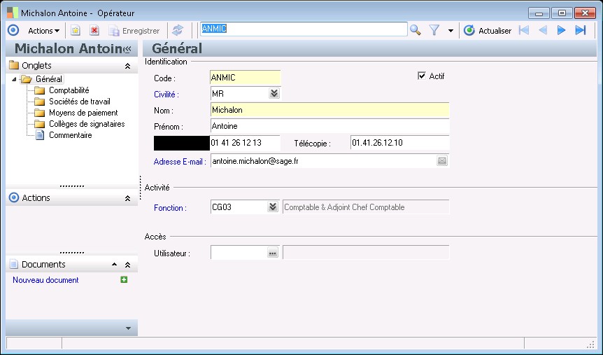 Cette zone permet de renseigner le numéro de télécopie de la personne.