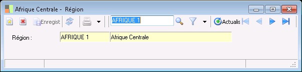 La fenêtre de saisie des régions permet d'enregistrer le code ainsi que la désignation des régions mentionnées dans les fiches tiers.