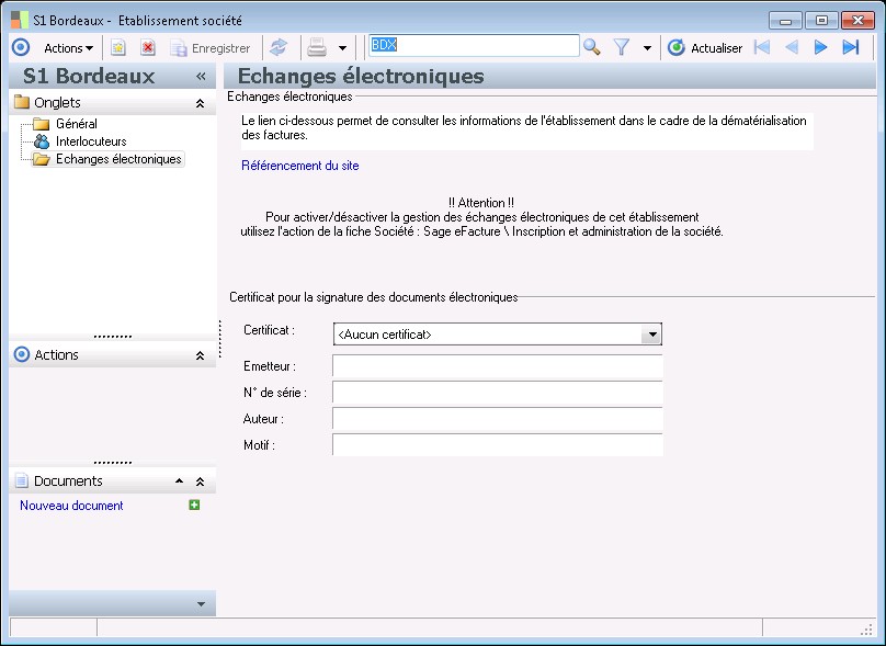 Cette zone permet de sélectionner la territorialité à laquelle appartient l'établissement.
