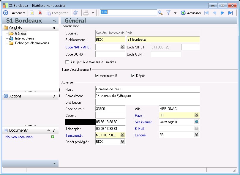 Au niveau de la fiche tiers, on peut gérer différents sites.
