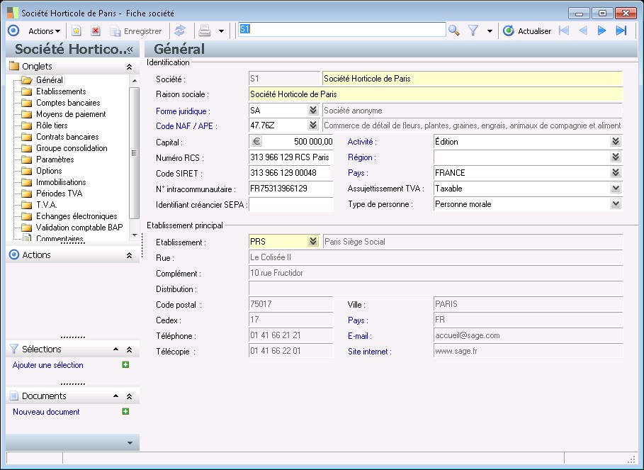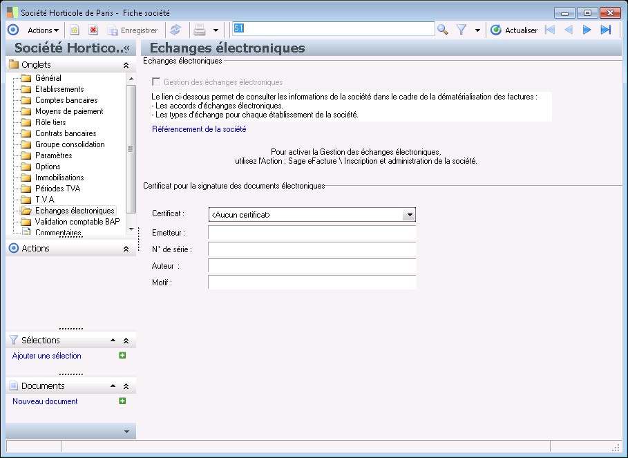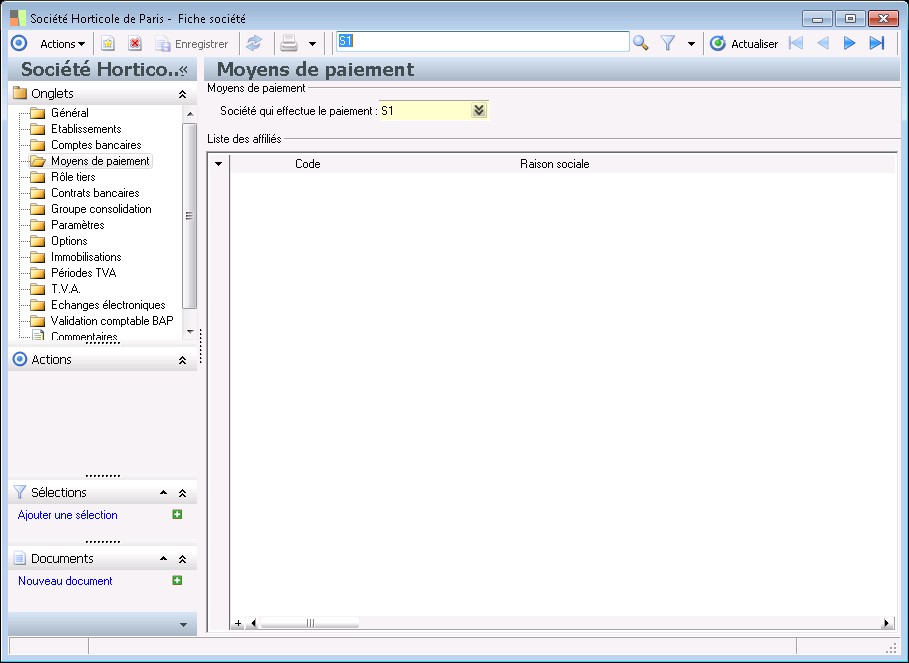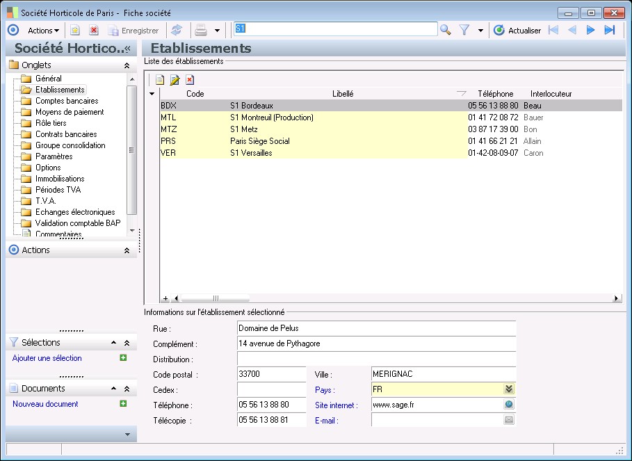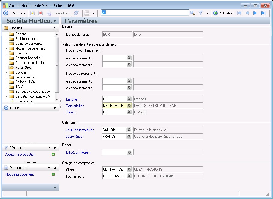 Cette zone permet de renseigner le pays d'après les informations contenues dans la table des pays. Le pays proposé par défaut correspond à celui de l'établissement indiqué dans la fiche société.