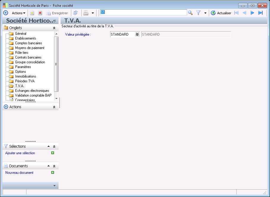 Cette information précise à quel mode de TVA est assujetti le tiers : Taxable, Non taxable, Intracommunautaire, Export, Fictive.